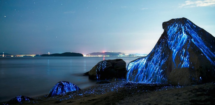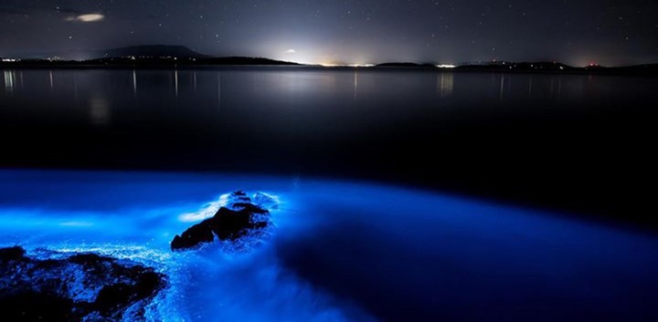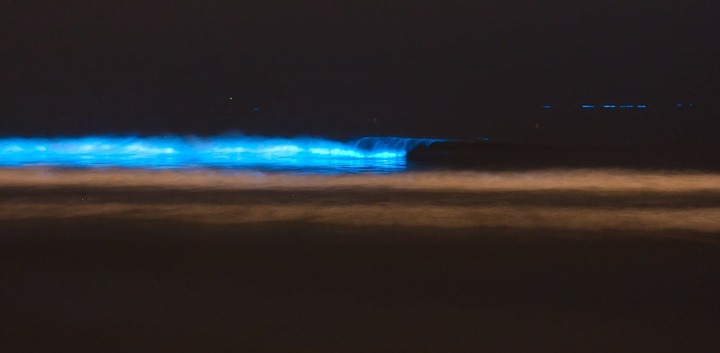 الساحل الشمالي الغربي من تسمانيا، هو نقطة ساخنة لالتقاط هذه الظاهرة السحرية، وتنتج الأنماط الزرقاء المتوهجة في الماء من قبل المليارات من العوالق النباتية واحدة الخلية تسمى نوكتيلوكا سسينتيلانز.