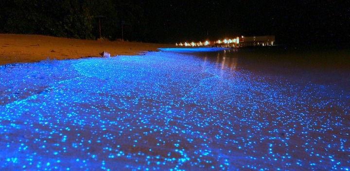 المياه الاستوائية حول هذه الجزر في المحيط الهندي تضم مخلوقات بيولومينسنت تدعى القشريات أوستراكود التي عادة ما تنبعث منها الضوء الأزرق لفترة أطول مقارنة بالعوالق الأخرى.