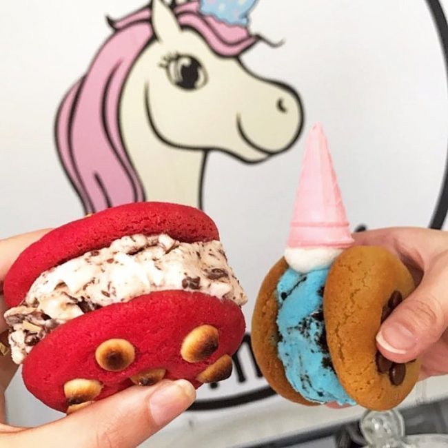 وتضم النكهات التي يقدمها يونيكورن زبدة الفول السوداني والمربى، ونكهة الكعكة الزرقاء والتي تأتي في مجموعة متنوعة من المخاريط مختلفة الألوان.