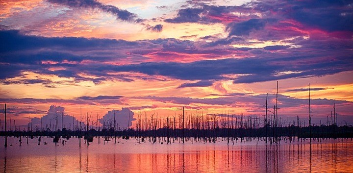 مشاهدة المياه الغامضة من بايو تتحول إلى بحر من الوردي مع غروب الشمس وراء المستنقعات، يوفر مشهدا فريدا ومثيرا، وهناك الكثير من جولات القوارب لاستمتاع بهذا المشهد الملون.