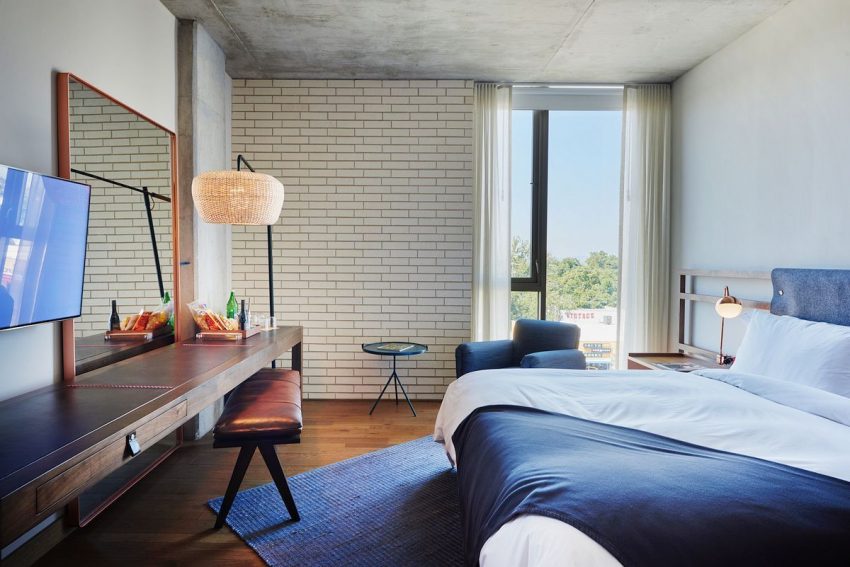 تتميز الغرف بأرضيات خشبية صلبة وأسقف من الخرسانة المكشوفة ومفروشات مخصصة، في حين تحتوي الأجنحة المجهزة بشكل فاخر على مناطق معيشة وشرفات مفروشة خاصة.