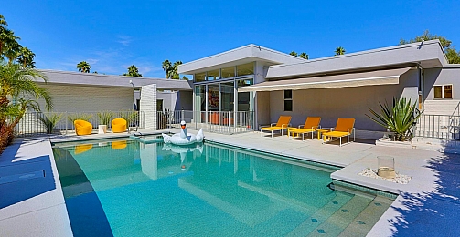 يقع Holiday House Palm Springs في حي داونتاون بالم سبرينغز في بالم سبرينغز، وعلى بعد 500 متر من أفينيو ساكس فيفث الشهيرة في الولايات المتحدة.، 28 غرفة رائعة مطلة على مسبح خارجي رائع وحوض استحمام ساخن، كما يمكن للضيوف الاستمتاع بالمطعم الموجود في الموقع, يوفر الفندق إمكانية استخدام الدراجات مجانًا. ويحتفي الفندق بالفن الامريكي المعاصر وفنون التصوير عبر عرض اعمال لفنانين شهيرين مثل دافيد هوكني وروي ليتشنشتاين واليكس كاتز، وفي الحديقة منحوتة مميزة لدونالد سلطان.