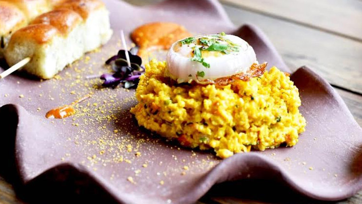 ماسكا فوكاتشيا – بيض مخفوق مع بهارات مسالا الهندية يُقَدم مع خبز الفوكاشيا الغني بالزبدة والمحضر على الطريقة المنزلية