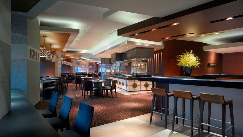 يحتل مطعم Vue الأنيق في الطابق الـ 4 من الفندق، حيث يقدم المأكولات الأوروبية مع إطلالة خلابة على منطقة البوند التاريخية، في حين أن مطعم Xindalu سوف يثير ذوقك مع المأكولات الصينية الأصيلة، كما تتوفر المأكولات العالمية الشهية في Aroma، ويمكن الاستمتاع بالوجبات الخفيفة في غرفة الشاي الساحرة “Tea Room”.