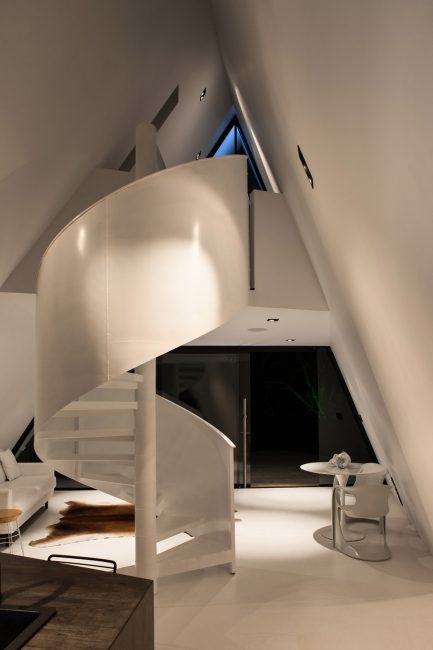 يضم الفندق منطقة معيشة مفتوحة مع الكثير من الضوء وغرفة نوم مستوحاة من خيمة جميلة متصلة مع مناطق المعيشة عبر درج حلزوني.