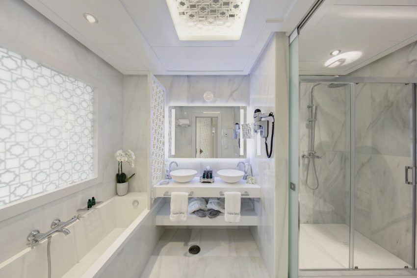 تتميز الغرف بأشكال مختلفة، ولكن جميعها مجهزة بشكل رائع بحمامات رخامية، وميزات تقنية حديثة، ومناظر جميلة، إما على الخليج الأزرق الفاتح أو المناظر الطبيعية الخلابة.