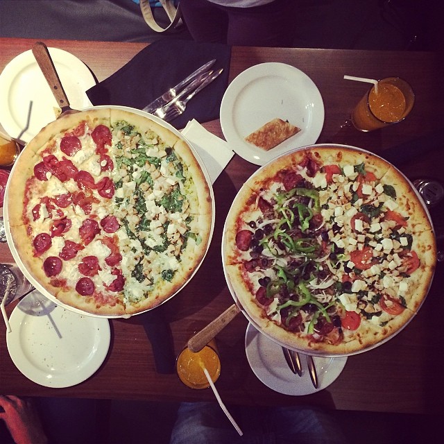 أو إذا كنت تتوق الى البيتزا اللذيذة، يمكنك الانغماس في شيء جديد مثل بروكلين سبيشيال الخاص الذي يتكون من قطع لحم البقر المفروم والفلفل الأحمر أو البيتزا الفريدو المغطاة بقطع الدجاج اللذيذة ثم تمتع بنهاية حلوة مع موس البرتقال أو الأناناس، أو كريب الفانيليا الرقيق الرائع.