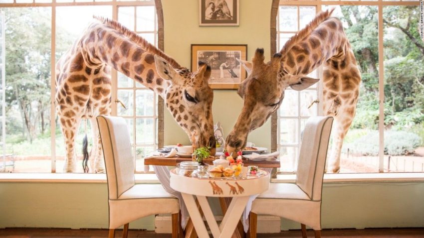 Giraffe Manor قريب أيضا من مركز الزرافة في نيروبي، وهي بقعة سياحية تقدم جلسات تغذية للزرافة.