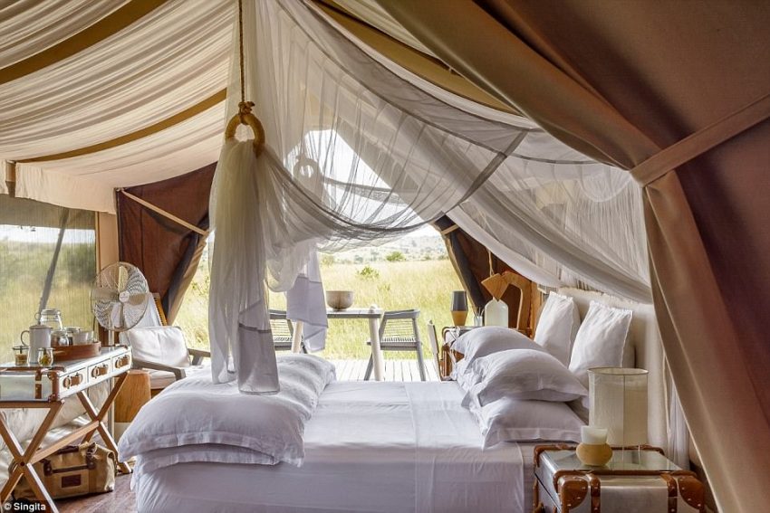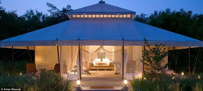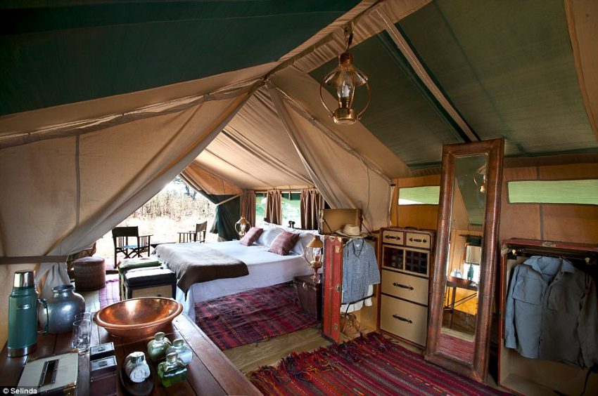 يمكن للضيوف الاختيار بين الخيام “الداخلية” التي تقدم تفسيرا أكثر حداثة لأماكن إقامة القرن العشرين، وهي عبارة عن “وحدات كلاسيكية على التلال”، والتي توفر نمطا تقليديا أكثر اتساما بالرفاهية الفاخرة في المخيم، وخيام “الغابات المطيرة” والتي تقدم قليلا من الاثنين معا. وتتميز جميعها بمفروشات من العالم القديم، مع مصابيح زيتية وشموع، ويمكن للمروحيات في الموقع أن تأخذ الضيوف أينما أرادوا.