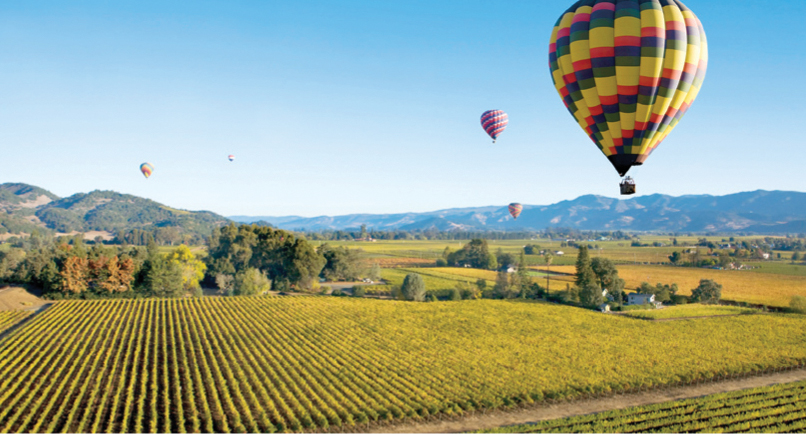 تنطلق رحلات المناطيد من ثلاث نقاط في كاليفورنيا، اعتماداً على الظروف الجوية، ويعتبر وادي نابا أهم هذه النقاط، حيث يستمتع السياح بالتحليق فوق الوادي والتلال المحيطة به، بالإضافة إلى جولة فوق جبل سانت هيلين شمالاً، وجبال ماياكاماس غرباً.