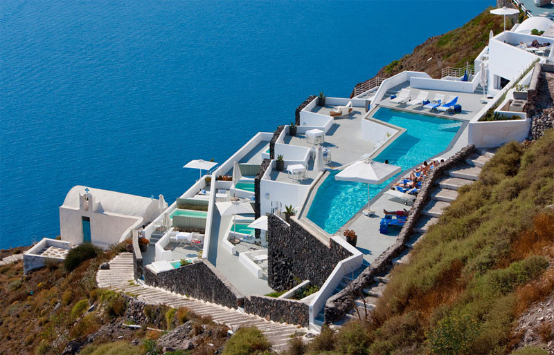 3- فندق Tharroe of Mykonos : يوجد على هضبة في جزيرة ميكونوس، لذلك تتيح فرصة الاستمتاع بمنظر الجزيرة من مكان مرتفع ، كما أن يمكنك الإستمتاع بمياه البحر وفي نفس الوقت تتيح لك فرصة الإستمتاع بمزايا الجبال من خلال ركوب الخيل و استئجار الدراجات الهوائية ، كما تستطيع استخدام مراكز العناية بالجسم والبشرة من تدليك ومساج وعناية بالجسم والبشرة والعناية الشعر.