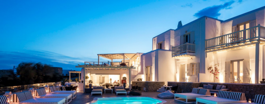 تحتوي جزيرة ميكونوس على مجموعة من أفضل الفنادق في اليونان والمصنفة عالمياً ومنها :