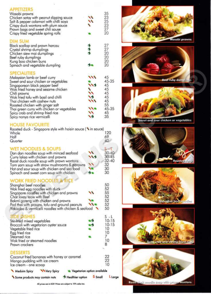 ’نودلز سنغافورة‘: نودلز الأرز والشعيرية، دجاج، روبيان مع البيض المقلي. 55 درهم إماراتي.