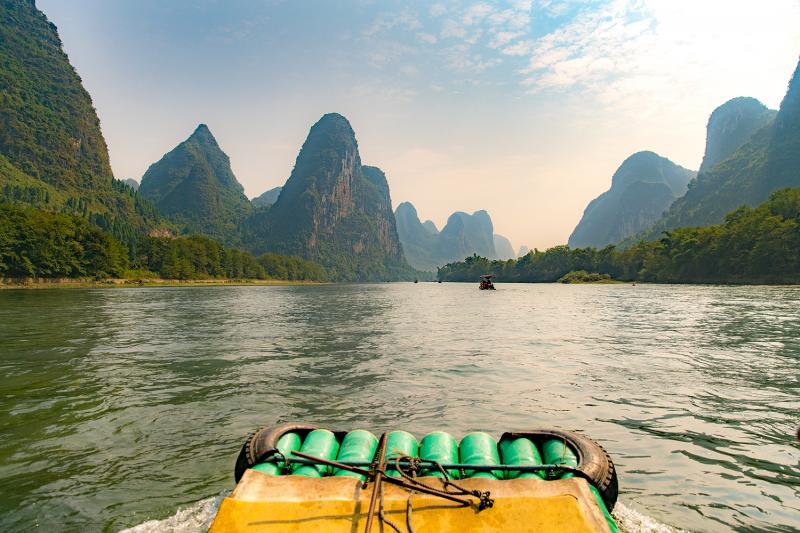 بالصور .. متعة الرحلات النهرية بالقارب في نهر لي الصين