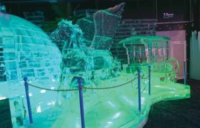 ما تمثل تجربة برودة ممتعة بعد انقضاء عطلة صيف حارقة في أكبر حدائق نحت الجليد في المنطقة، والتي تم نحت المنشآت فيها بمهارة عالية باستخدام 5000 طن من الجليد، حيث تعرض نسخة مصغرة من مدينة دبي على الجليد.