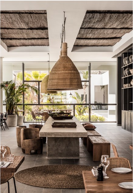 تمزج وحدات الإقامة بين الوسائد المطرزة البيضاء والأقمشة الحرفية، وقد تم توقيع الديكور من قبل المصمم الداخلي الأنيق، أنابيل كوتوكو، المعروفة بتصميم فندق سكوربيوس في ميكونوس.