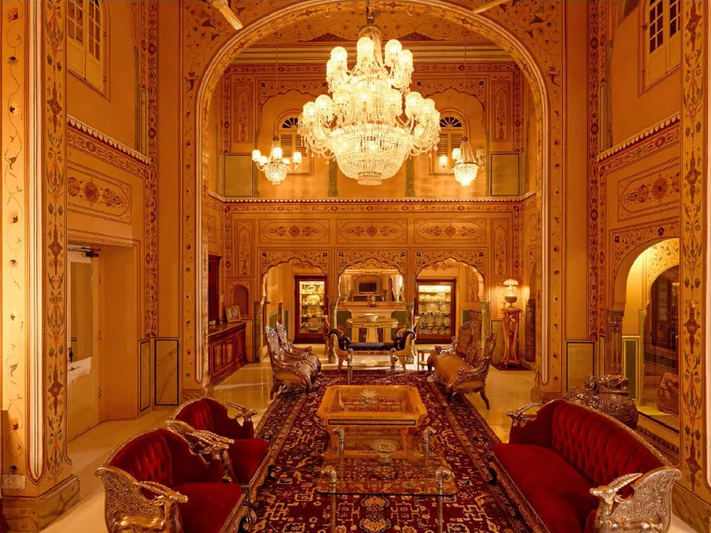 سوف تعيش مثل الملوك إذا قررت الإقامة في قصر راج، القلعة الملكية القديمة المستعادة في الهند، ويكلف جناح المهراجا 65.000 دولار في الليلة الواحدة، وهو جناح متعدد المستويات مع سقوف مزدوجة الارتفاع وثريات بلورية وتراس وحتى متحف خاص