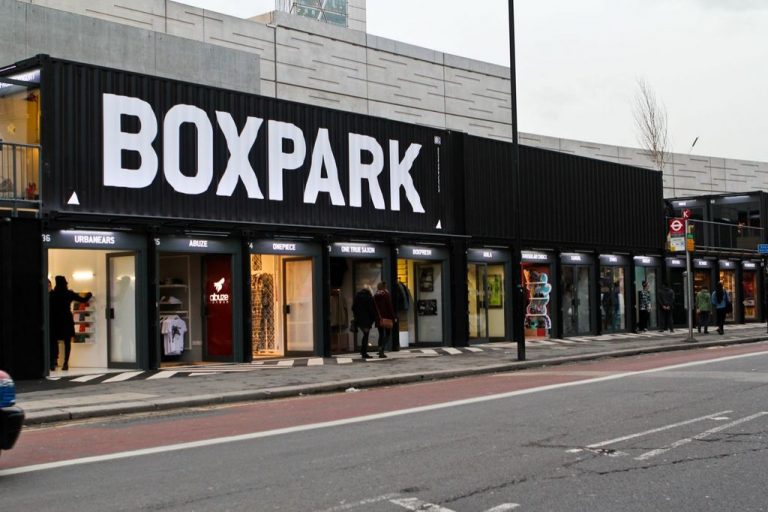 فالمبنى مصنوع من حاويات الشحن. يضم السوق العديد من المتاجر.