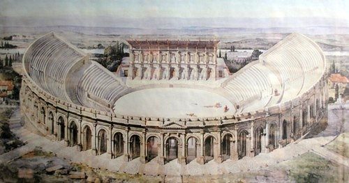 ويعتبر من آثار الامبراطورية الرومانية، وكانت تقام فيه في الماضى العروض المسرحية، بالإضافة إلى عروض المصارعة الرومانية.
