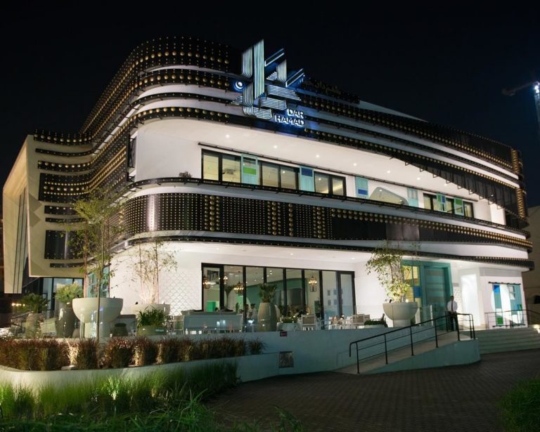 ويقع مطعم دار حمد بالقرب من مجمع مارينا وبجانبه مقهى شعبي كبير، وكذلك يقدم المطعم خدمة موقف السيارات المجاني الذي يضم سيارات الزوار، وقد كان المطعم من قبل عبارة عن منزل كبير إلى أن تم تحويله إلى مطعم مميز على البحر مباشرة.