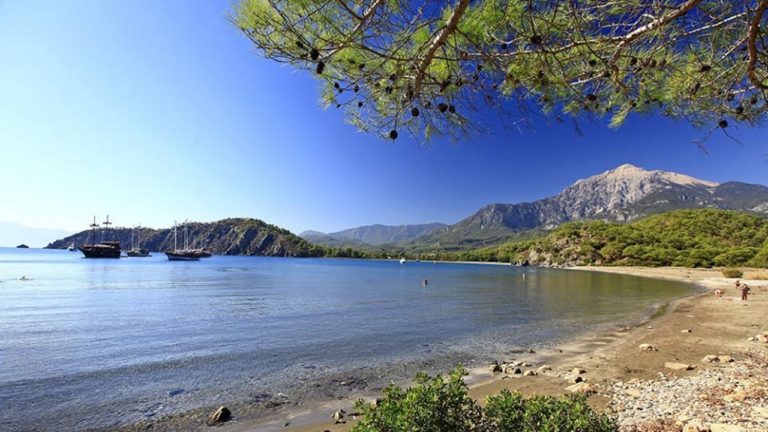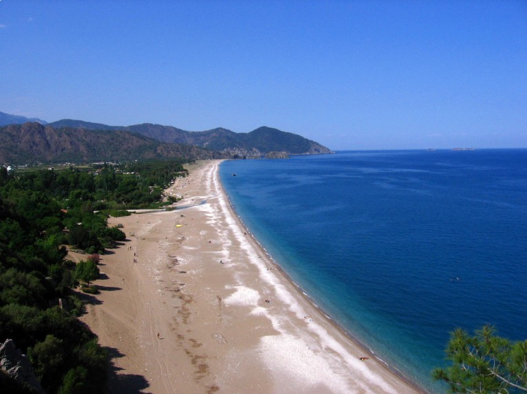 وهو من أجمل الشواطىء “الزرقاء” كما يطلقون عليه بتركيا، لتمتعه بمياه زرقاء صافية، ويمتاز بموقعه بالقرب من منطقة Fethiye ويمكنك الوصول إليه وبسهولة من أى مكان بتركيا، ويزخر الشاطىء بأعداد هائلة من السياح بفضل جوه المشمس الجميل وإحتواءه على أجمل الغابات الكثيفة حيث يمكنك إلتقاط أجمل الصور التذكارية بها، وأغلب زوار الشاطىء من عاشقى رياضة المشي ومغامرات ركوب الزوارق والقيام بأجمل الجولات البحرية، بالإضافة إلى تجربة التخييم على الشاطىء والإقامة بالمنازل المبنية من الأِشجار .