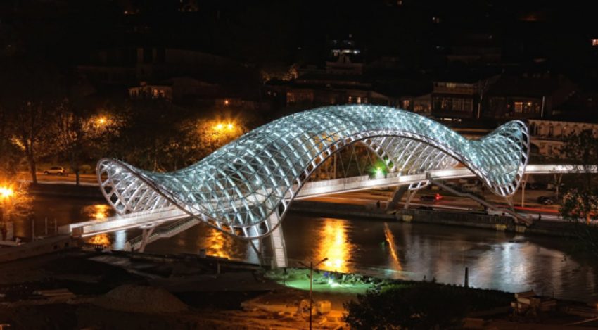 يمكن الوصول إلى الجسر المصنوع من الزجاج والفولاذ من شارع شارديني في تبليسي والاستمتاع بالسير في سلام فوق المياه دون الخوف ن السيارات أو المركبات حيث أن الجسر للمشاة فقط.