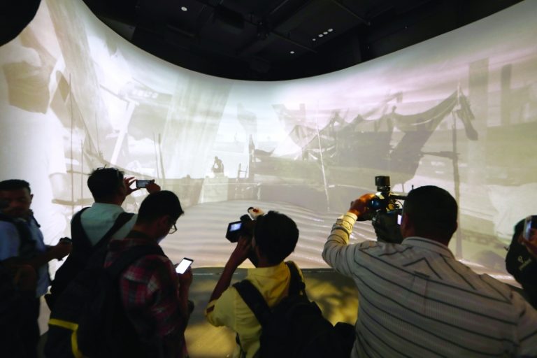 المعلمة الجديدة تحتوي في مدخلها نافورة راقصة على أنغام الموسيقى بأشكالها الفريدة والمفرحة، و التي تمهدك لدخول عالم آخر في طابق الميزانين الذي يضم متحفاً يحكي حكايات الغوص على اللؤلؤ، والصناعات اليدوية، والصناعات التراثية.
