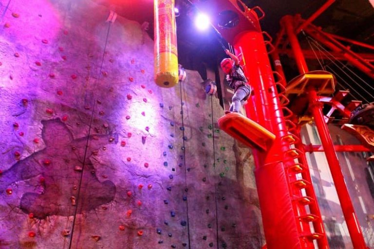 • لمحبي المغامرات وألعاب التسلق يمكنكم تجربة أحداها والتسلق على جدار مرتفع به مجموعة من الأحجار والحبال القوية التي ستساعدكم في الصعود لأعلى ثم القفز على التربين المطاطي الرائع