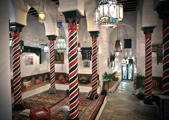 يوجد بجوار جامع الزيتونة بالمدينة العتيقة فى تونس العاصمة ويتميز بوجود العديد من الأسواق الشعبية حوله مثل سوق الترك , العطارين والقماش  فتستتطيع أن تتسوق أنت وعائلتك وتشتروا ما تريدوا من السوق ثم تذهبوا للجلوس فيه على الحصائر المصنعة من نبتة السمار وتتناولوا مشروب جميل وأنتم تشاهدوا الفرق الموسيقية التى تغنى به فنؤكد لك عزيزى السائح أنكم ستقضون أجمل الأوقات به وستتخلصوا من ضغوطات الحياة حيث البساطة والفن والتاريخ فالمقهى كان ملتقى لجنود الجيش العثمانى فى السابق .