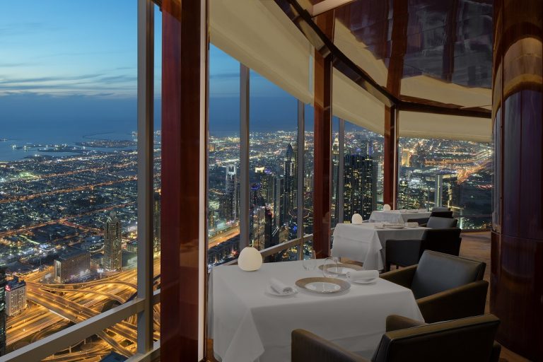 الغداء في مطعم “أتـ.موسفير”: إنفاق 450 درهماً للشخص كحد أدنى للطاولة غير المجاورة للنافذة و500 درهم للشخص للطاولة المجاورة للنافذة
