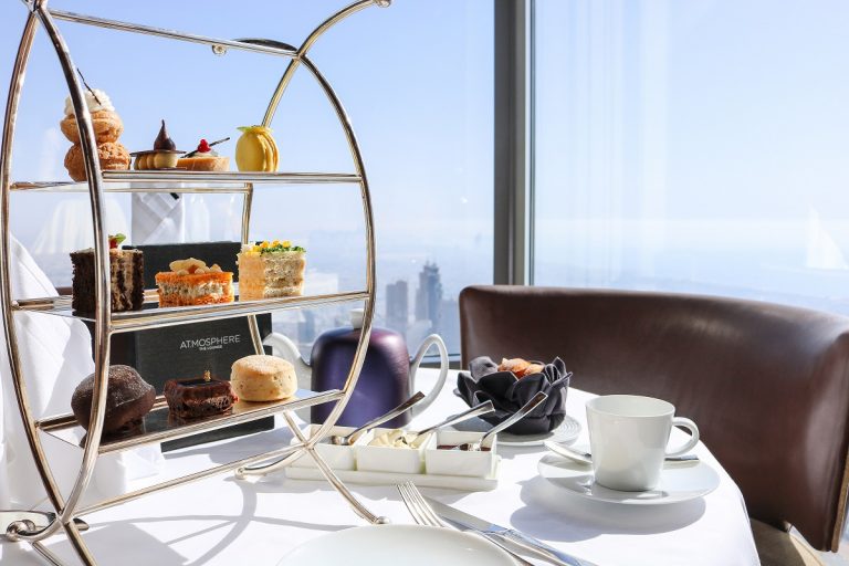 أمسيات الشاي في ردهة “أتـ.موسفير”: القائمة التقليدية – إنفاق 440 درهماً كحد أدنى لطاولة غير مجاورة للنافذة و515 درهماً للقائمة الفاخرة للطاولة المجاورة للنافذة و680 درهماً تشمل قارورة عصير فاخر
