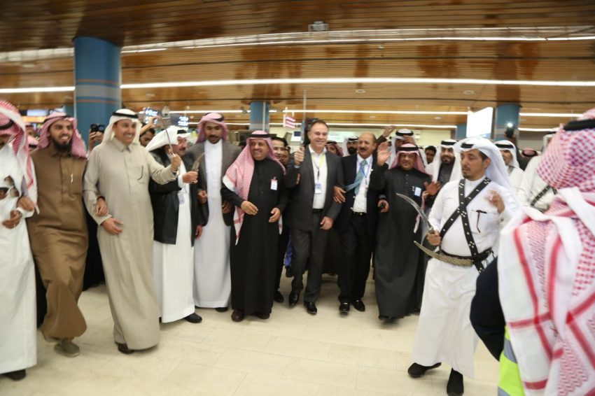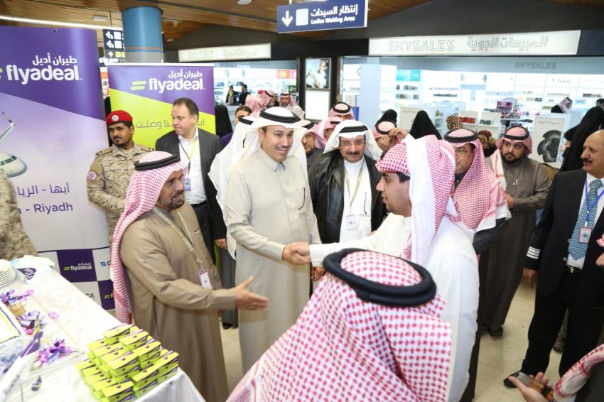 أما داخل صالة الوصول بالمطار فقد أقيم حفل رسمي، بحضور سعادة المهندس صالح بن ناصر الجاسر، رئيس مجلس إدارة «طيران أديل» مدير عام الخطوط الجوية العربية السعودية والأستاذ فهد العدواني مدير عام المطارات الجنوبية، والسيد كون كورفياتس الرئيس التنفيذي لـ”طيران أديل”، إضافةً الى عدد من مسؤولي ومنسوبي المطار والإعلاميين، وبمشاركة فرقة شعبية عرضت فلكلور فنياً من تراث منطقة عسير.