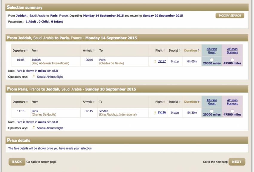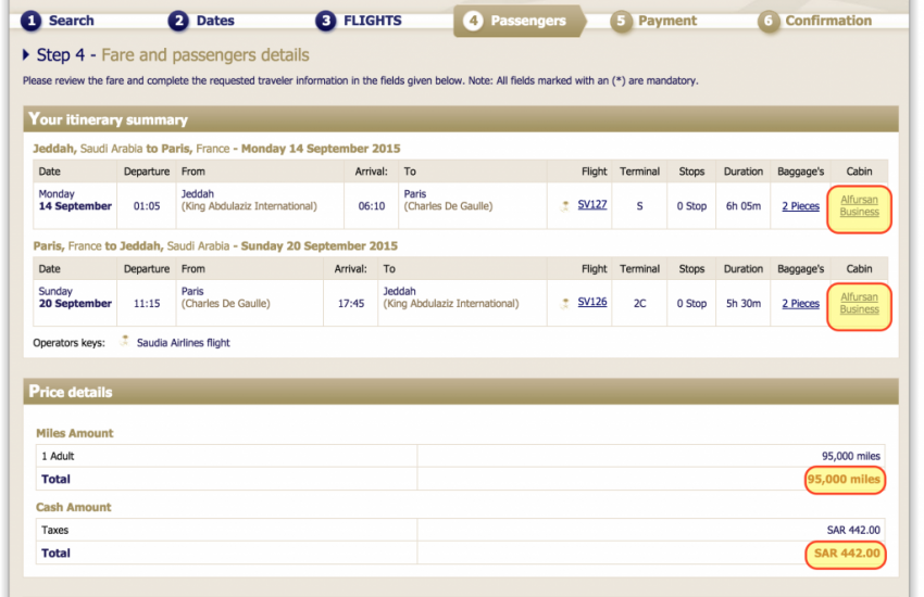 بالمختصر المفيد، تستطيع شراء رحلة دولية من جدة إلى باريس ذهاباً و اياباً على درجة رجال الأعمال بـ 3015 ريال + 60 الف ميل.