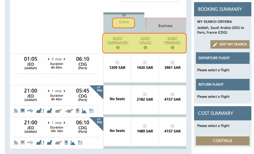 4- جدة – باريس – جدة (ترفيع درجة من Guest Value) فرق التذكرة *6654 ريال الآميال المحتاجة لنفس الرحلة 60 الف ميل = النتيجة 0.11 ريال