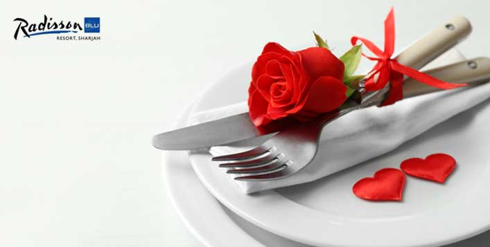 يقدم مطعم كاليبسو الواقع في منتجع راديسون بلو الشارقة عشاء رومانسي من 3 اطباق من قائمة طعام محددة في خيارين :