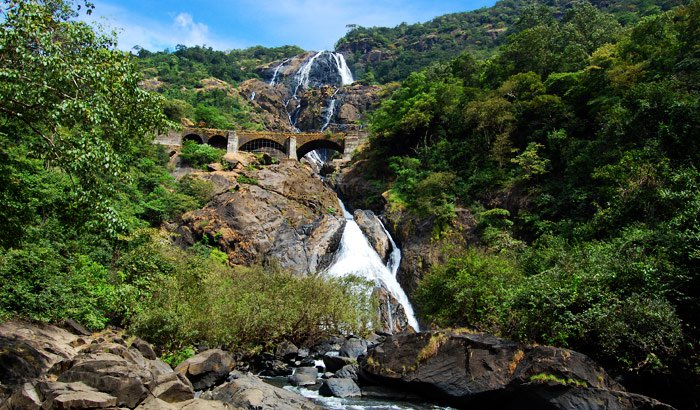 شلالات دودساغار أحد الأماكن السياحية في غوا التي يجب زيارتها حيث؛ يمكنك الاستمتاع بمنظر خلاب لأجمل المظاهر الطبيعية في المدينة.