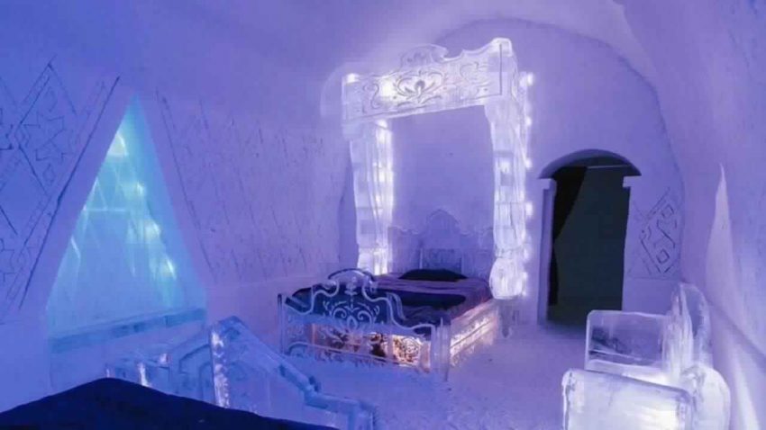 1. يمتدُّ “فندق الثلج” على مساحة 2.973 مترًا مربعًا، وهو يحوي غرفًا وأجنحةً مؤثَّثةً بأثاث مصنوع من الجليد، لا سيَّما الأسرَّة المُزوَّدة بقواعد خشب صلبة وأفرشة مريحة.