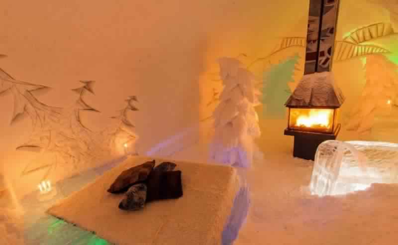 4. يضمُّ فندق الثلج بعض الغرف ومدفأة و”سبا”.