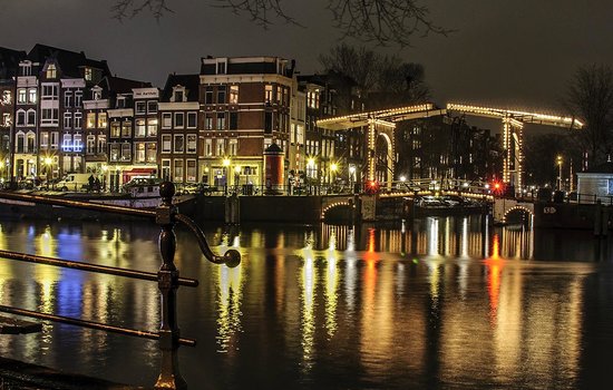 • ومن أهم الأنشطة التي يمكنك الاستمتاع بها والتقاط الصور، هي رحلة مسائية في النهر لترى انعكاس أضواء أجمل الجسور في أمستردام على النهر أثناء تغير لون سماء الغروب.