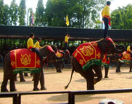 وقد تم تدريب الفيلة الصغيرة والكبيرة لاستخدامها للعمل في المجال السياحي، مثل خدمات نقل الركاب وبعض عروض الرقص والعروض الموسيقية.