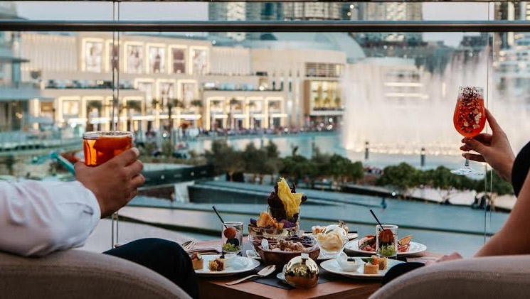 تجربة تناول مشروبات الأبيريتيفو مجاناً، على تراس مطعم أرماني/ريستورانته، وجلسات الظهيرة المميزة من بوليتشينه، الاسم المأخوذ من الإيطالية والتي تعني الفقاعات، وفي هذا المكان يمكن للشخص الانعزال عن العالم الخارجي لمدة ساعتين، وتناول ما يشاء من مجموعة مختارة من ستة مشروبات إيطالية فاخرة، ومنها النبيذ باللونين الأحمر والأبيض أو شامبانيا الفينيتو، إضافةً إلى الإطلالة المميزة على نافورة دبي وقائمةً مختارة من المأكولات.