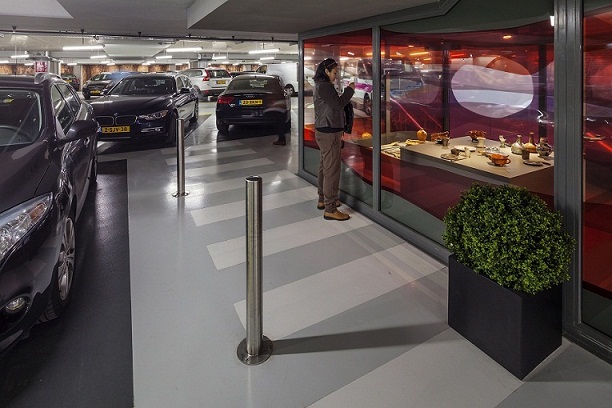 • ثم تبدأ جولتك التسوقية داخل قاعة التسوق المزودة بسقفٍ من الأعمال الفنية المثيرة التي تبلغ مساحتها 11,000 متر مربع من الفواكه والخضراوات والأسماك والزهور، والتي يتم عرضها على 4000 لوح من الألمنيوم باستخدام تقنيات رقمية ثلاثية الأبعاد، وبسببها لُقب المبنى بكنيسة سيستينا روتردام.