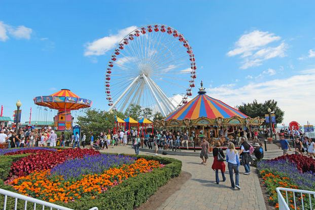 • يضم رصيف شيكاغو البحري ملاهي عديدة والعاب تناسب مختلف الاعمار، يمكنكم ركوب العجلة العملاقة وهي من ابرز معالم الجذب هناك والتي ترتفع 200 قدم وتطل على افق مدينة شيكاغو .