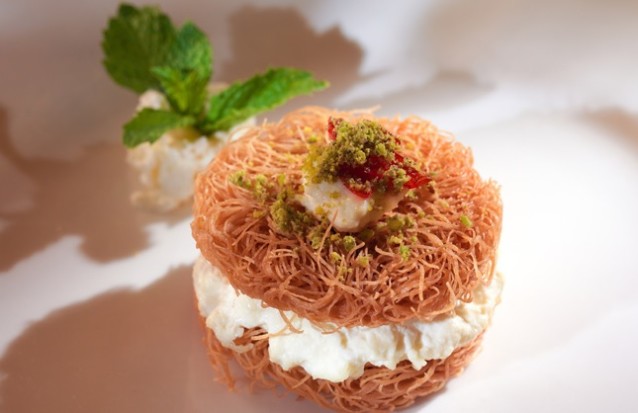 تتمتع أطباقه بنكهة أصيلة مميزة كطبق ورق العنب، والحمص، والسلطات المختلفة، بجانب الأطباق الرئيسية منها خليط المشاوي.