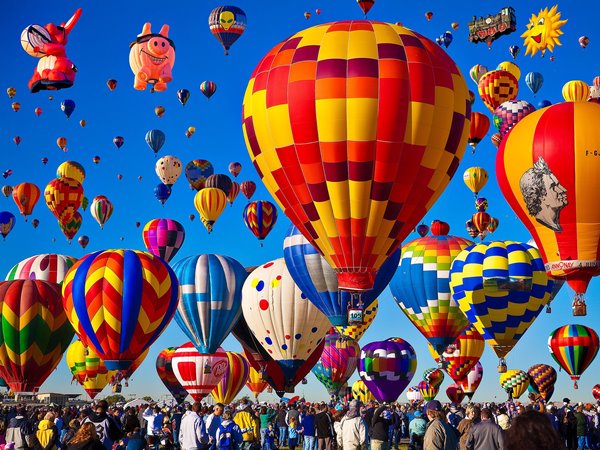 3. مهرجان “البوكيرك” الدولي لمناطيد الهواء: هو مهرجان سنوي يُنظَّم في “البوكيرك”، بـ “نيو مكسيكو”، خلال شهر أكتوبر/ تشرين الأوَّل. ويمتدُّ الحدث على تسعة أيَّام، وهو ثاني أكبر مهرجان في العالم، بعد “مونديال إيرون بالونز” في لورين ببفرنسا