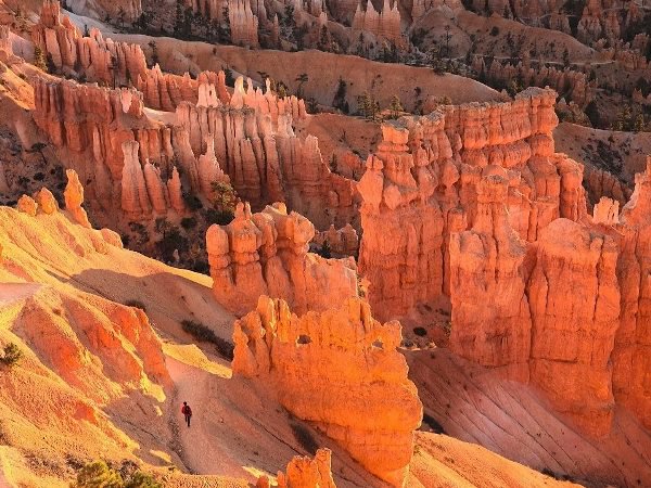 7. “بريس كانيون ناشيونال بارك”:حديقة وطنية أمريكيَّة تتمركز في جنوب غرب ولاية يوتا. الميزة الرئيسة للحديقة هي بريس كانيون، التي تتشكَّل من الصقيع المتجمِّد وتآكل النهر والصخور الرسوبية. وهناك، توفِّر ألوان الصخور الحمر والبرتقالية والبيض مناظر حلابة لزائري الحديقة.