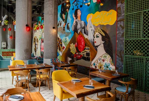 كما يمتاز المطعم الجديد في حي التصميم بدبي، بتصميمات داخلية إنتقائية مع العناصر الصناعية المتناغمة مع الأثاث الناعم، وهناك أيضا بعض التصاميم العربية على شكل جداريات ذات حجم كبير، بالإضافة إلى لوحات الفن الشعبي المرسومة على الجدران.
