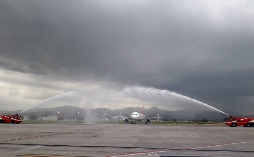 هذا وكانت الرحلة الافتتاحية للناقلة والتي حملت الرقم E5103 قد حطت في مطار بيرغامو الدولي في مدينة ميلانو، التي تقع في شمال إيطاليا وتمتاز بكونها عاصمة الفن والموضة الإيطاليين، علاوة على تاريخها الحافل والعريق، وتعج دروبها الضيقة المرصوفة بالحصى، بالمتاجر الصغيرة التي تعرض أحدث صيحات الموضة الإيطالية والعالمية، في يوم الجمعة 4 مايو الجاري في تمام الساعة 19:45 بالتوقيت المحلي، حيث كان في استقبالها وفد من كبار المسؤولين في شركة العربية للطيران ومطار بيرغامو الدولي.