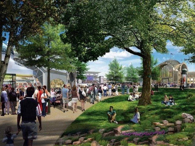 • ثم يمكنكم التجول في ساحة المدخل الكبرى التي تتضمن أماكن استراحة ومساحات خضراء وممرات للمشاة، والعديد من وسائل الترفيه.