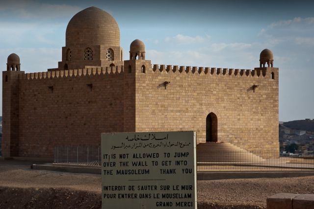 هو مدفن السلطان محمد شاه الذي توفى عام 1957م، وتم بناء الضريح من الأحجار الجيرية، ويقع الضريح على جزيرة وسط نهر النيل، وقام السلطان ببناء مقبرته على الطراز الفاطمي القديم، ويعتبر الضريح من معالم اسوان مصر المهمة.